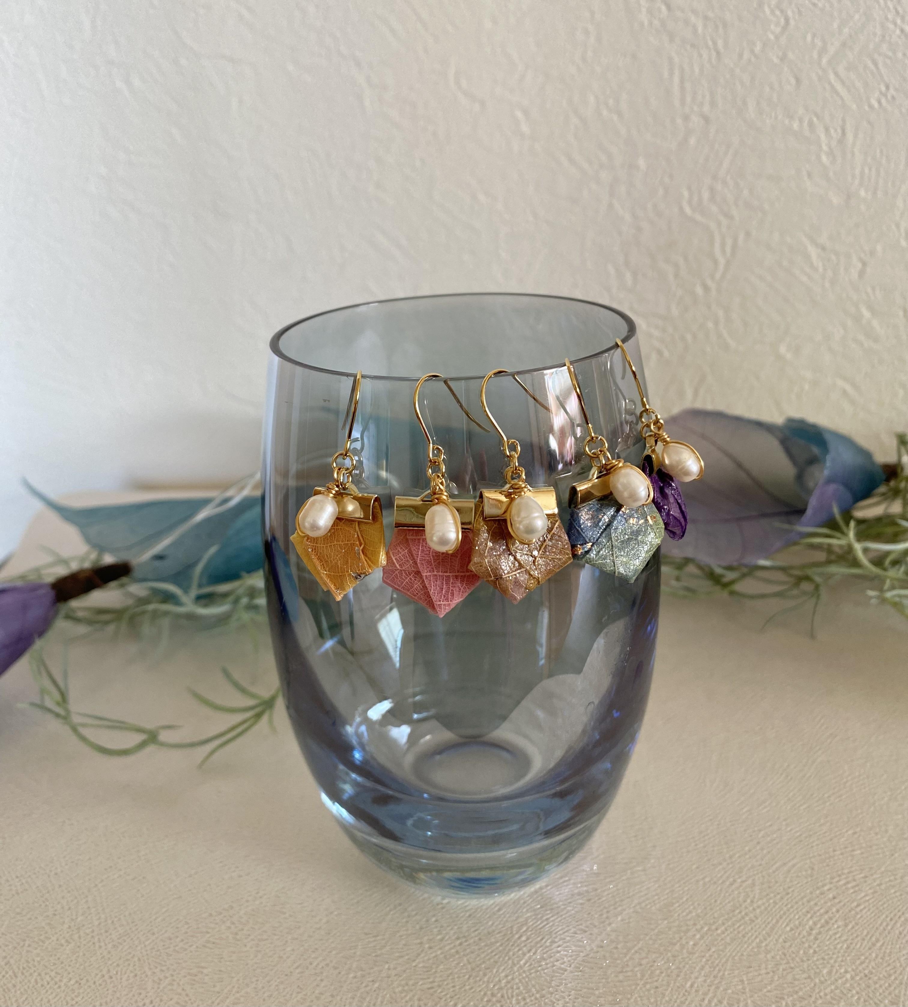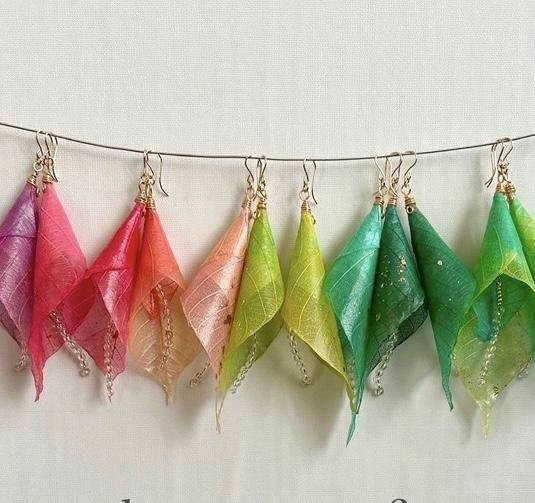 ・ゴムの葉を加工し、ピアス、イヤリング、ネックレスなど