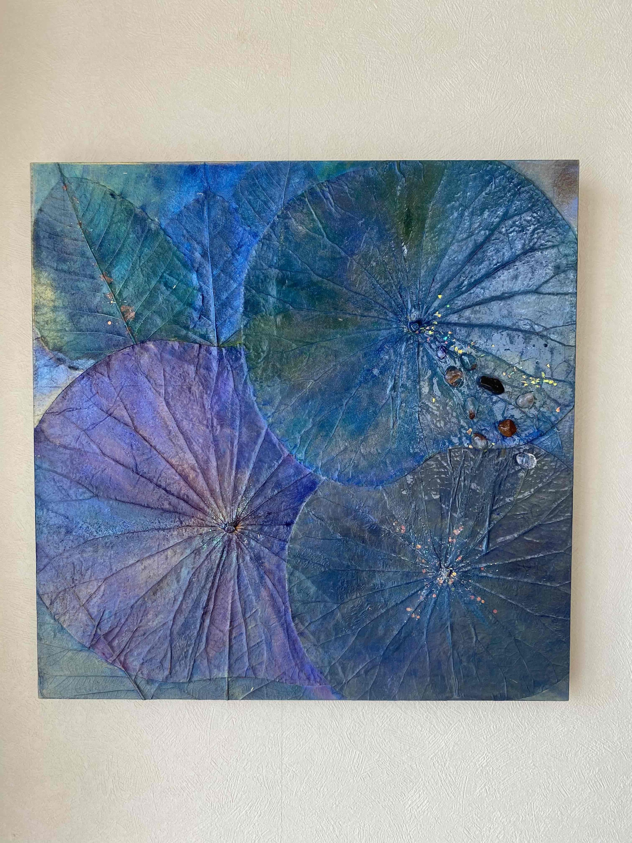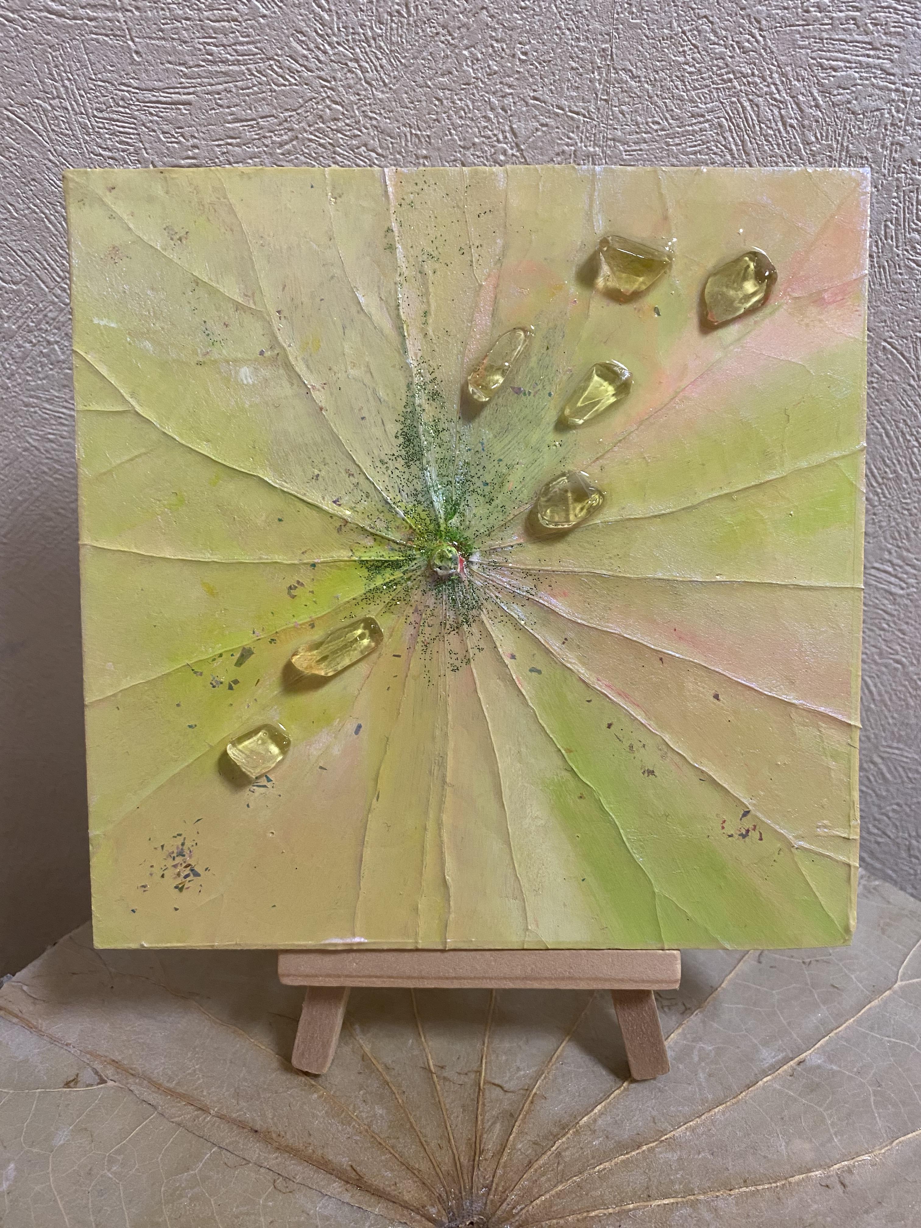 小さいサイズのパネル、天然石や和紙を使い